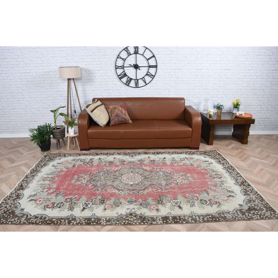 พรมขนาด 5.4x9.3 ฟุต, พรมวินเทจ, พรมขอบผ้าขนสัตว์สีแดงตุรกี