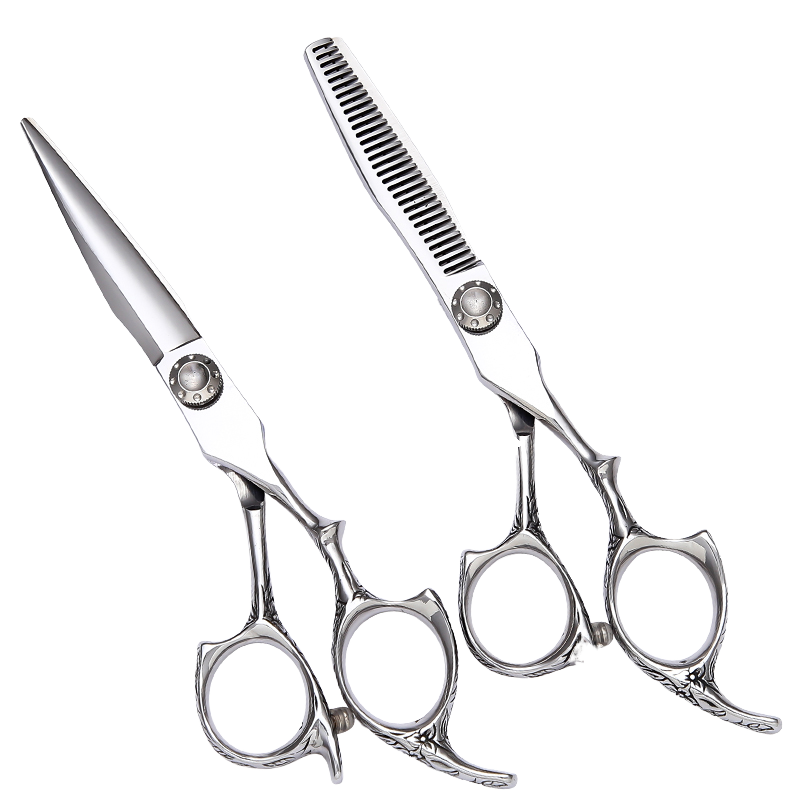 กรรไกรตัดผมแบบมืออาชีพขนาด5.5นิ้ว6นิ้ว440C นิ้วหัวแม่มือหมุนได้440C ญี่ปุ่นกรรไกรซอยบาง A9019สีดำสวย