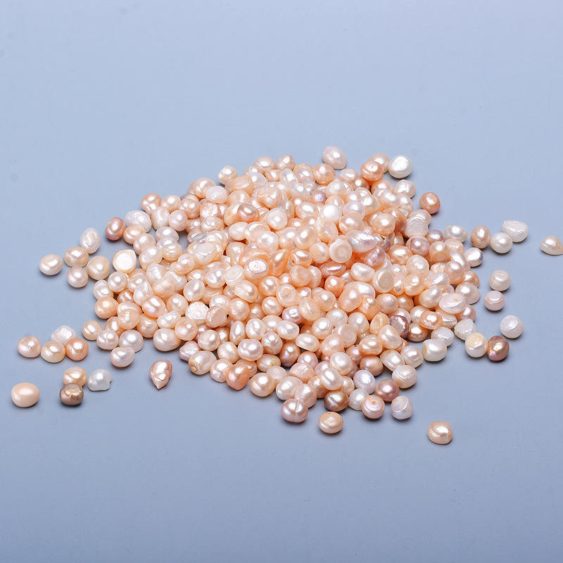 ไข่มุกน้ำจืดธรรมชาติขนาด 5.5-6 มม. ย้อมสีดำ รูปทรงกลม พร้อมสีขาวเงางาม ไข่มุกเปลือยแบบครึ่งรู สำหรับทำเครื่องประดับ