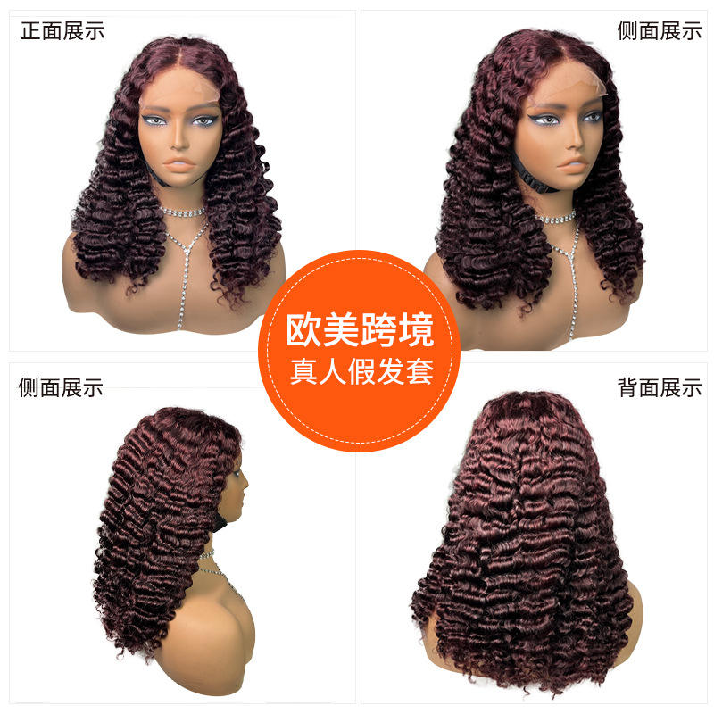 วิกผมหยิกชาวพม่า5*5หน้าสำหรับผู้หญิงผมหยิกสั้นแบบชาวพม่า