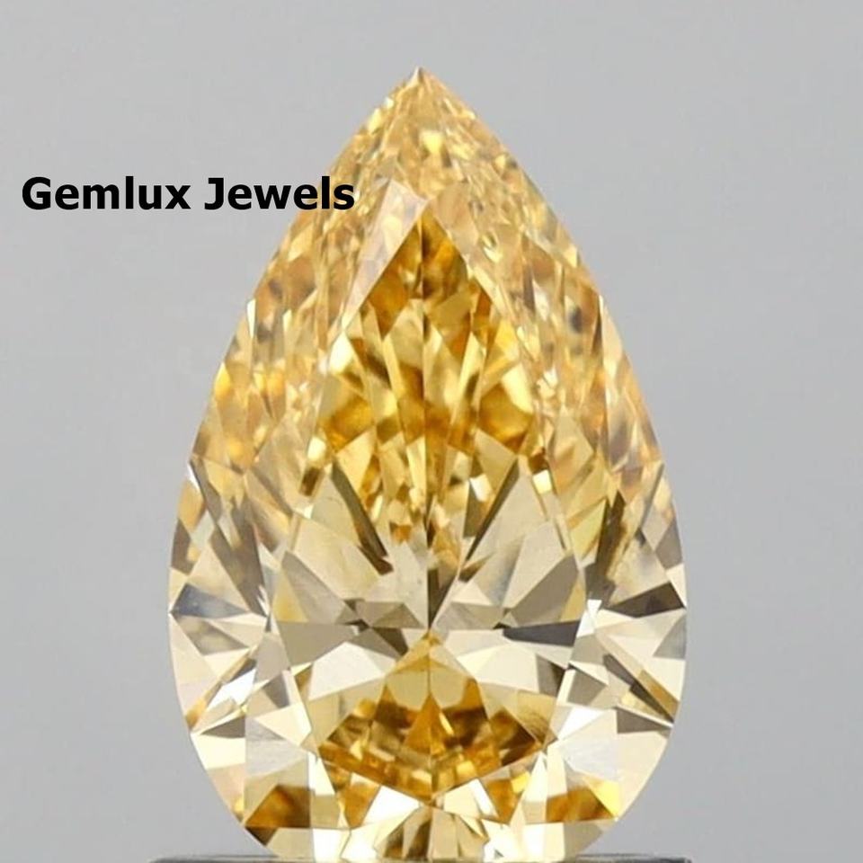 เพชรทรงหยดน้ำสีเหลืองเข้มแฟนซี 5.5 กะรัต ได้รับการรับรองจาก IGI ความสะอาดระดับ VS เพชรเพาะเลี้ยงสำหรับทำเครื่องประดับ