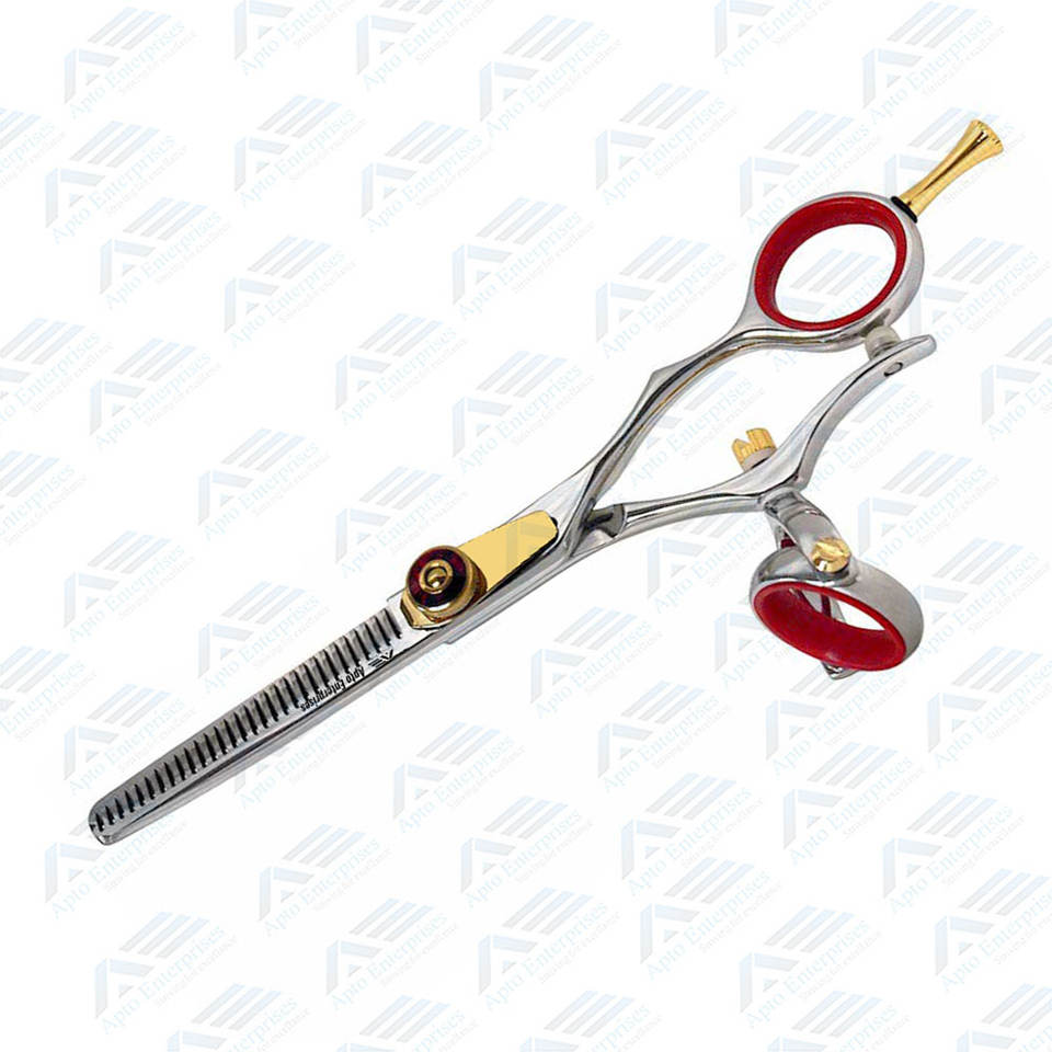 กรรไกรซอยผมแบบหมุนได้สองด้าน ขนาด 5.5 นิ้ว 30 ซี่ ทนทาน คมกริบ สำหรับร้านเสริมสวย พร้อมปุ่มปรับแรงตึงแบบคลิกสีแดง