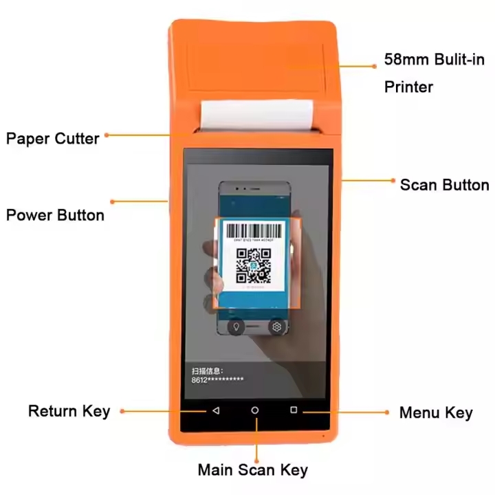 เครื่อง POS พกพาขนาด 5.5 นิ้ว พร้อมระบบ Android 8.1 รองรับ USB 4G/WiFi/BT เครื่องสแกน NFC เครื่องพิมพ์ความร้อน แบตเตอรี่ 5000mAh