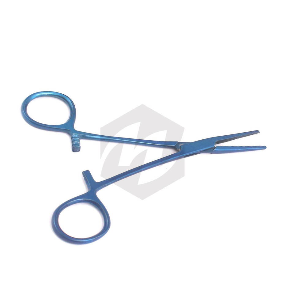 คีมหนีบผ่าตัดสำหรับสัตว์แพทย์และทันตกรรม ขนาด 5.5 นิ้ว แบบตรง ชนิด Crile Hemostat สีฟ้า ทำจากสแตนเลส