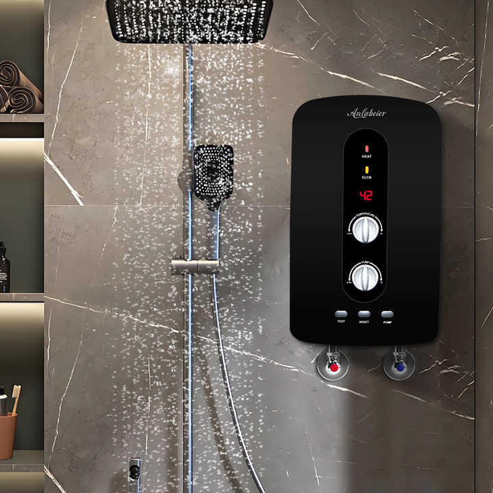 เครื่องทำน้ำอุ่นไฟฟ้าแบบไร้ถังขนาด 5.5 กิโลวัตต์ พร้อมปั๊มเพิ่มแรงดันในตัว ตัวทำความร้อนสแตนเลส กันน้ำระดับ IPx4 สำหรับโรงแรม
