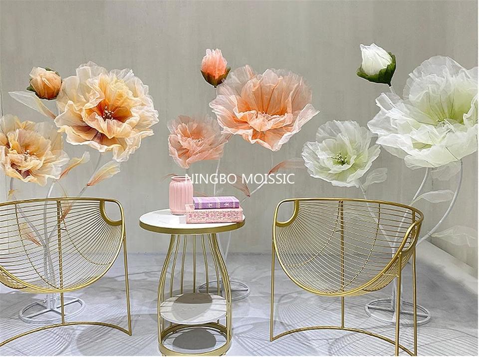 การจัดดอกไม้ผ้าไหมสีแดงขนาดยักษ์พร้อมขาตั้งฉากหลังบานเทียมสำหรับถ่ายภาพงานแต่งงาน5.5ft