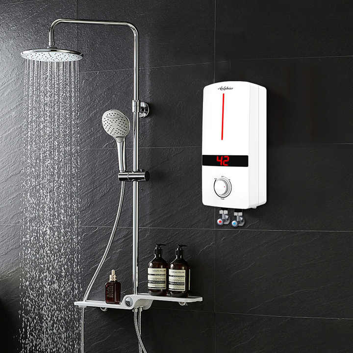 5.5KW น้ำพุร้อนไร้ถังไฟฟ้าขนาดเล็กแบบทันทีสำหรับห้องน้ำเทคโนโลยีใหม่เครื่องทำน้ำร้อน LED ตัวควบคุมลูกบิดพลาสติกสำหรับโรงแรม
