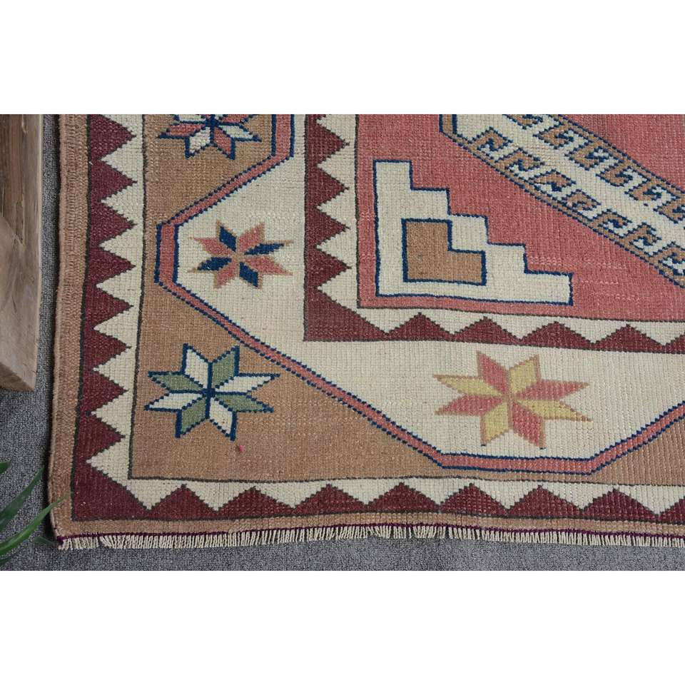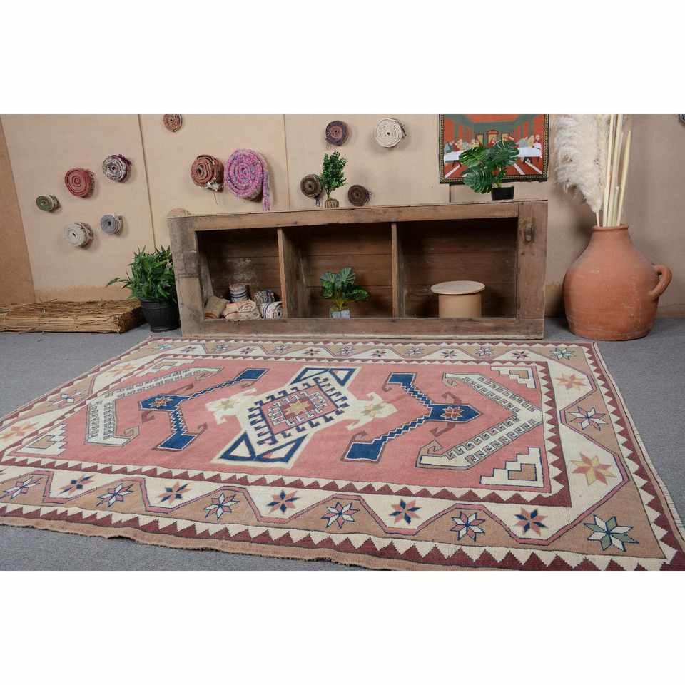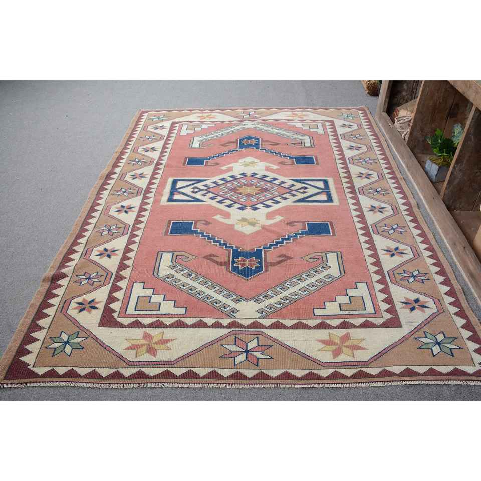 พรมวินเทจขนาด 5.5x7.3 ฟุต สีแดงลายจุด พรมตุรกีทำจากขนสัตว์