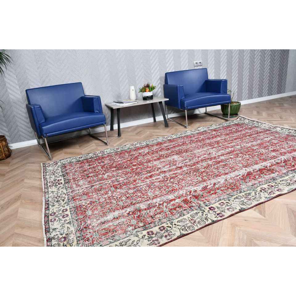 พรมขนาด 5.5x8.9 ฟุต, พรมตุรกีโบราณ, พรมลายสัตว์สีแดงขาว