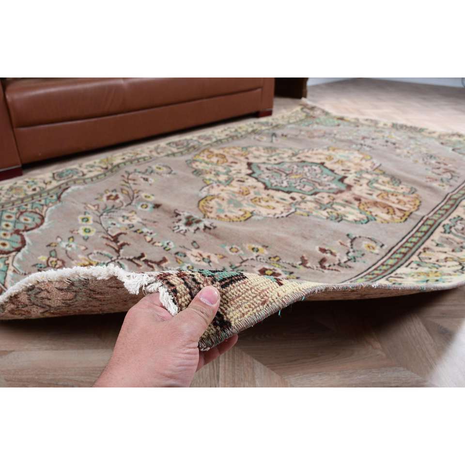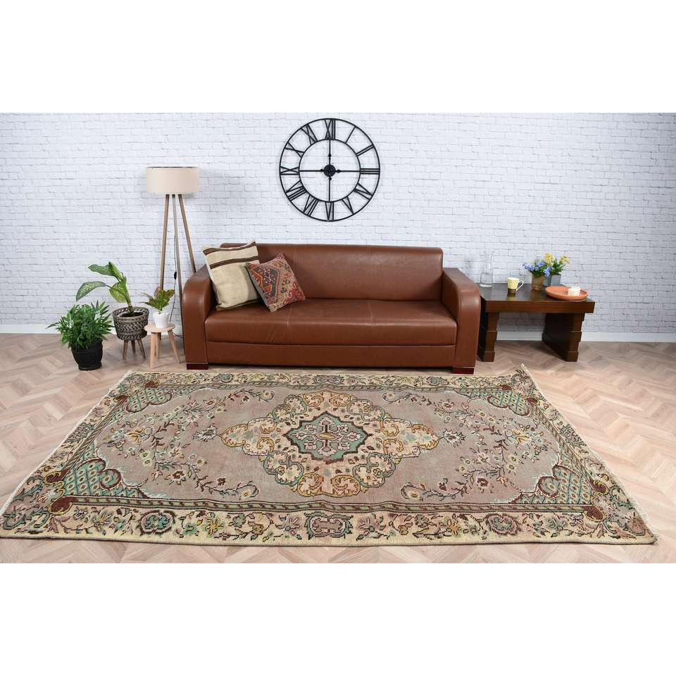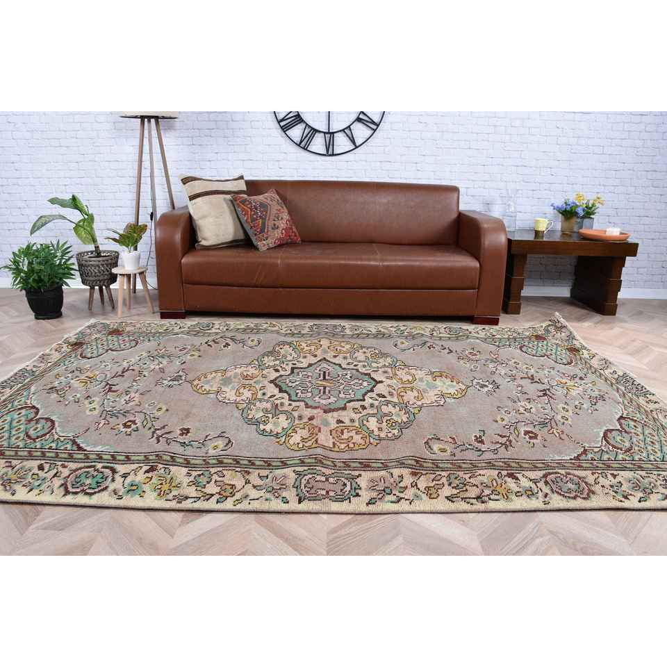 พรมวินเทจขนาด 5.5x8.9 ฟุต พรมตุรกี พรมขนสัตว์สีน้ำตาลล้วน
