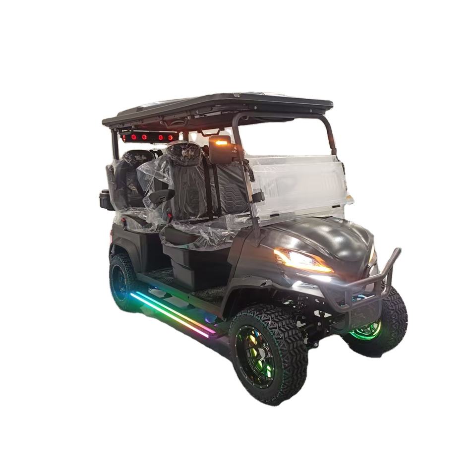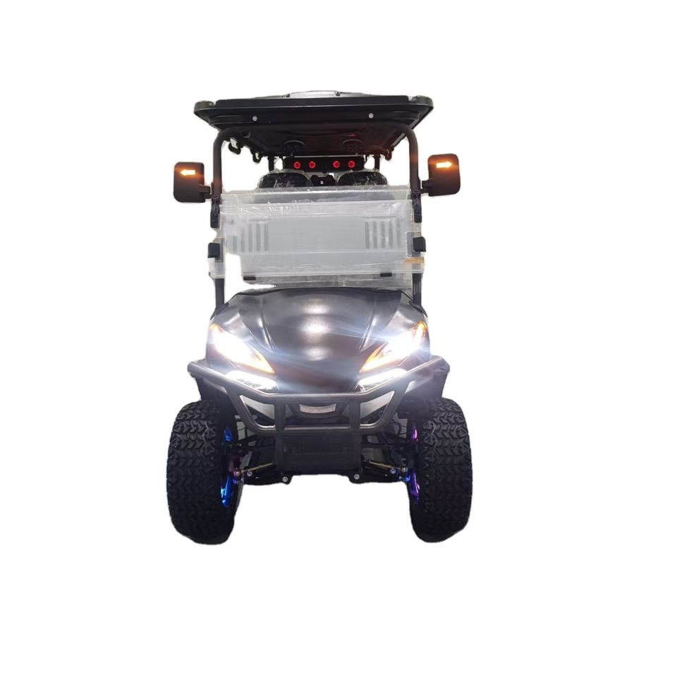 รถกอล์ฟไฟฟ้า 5-6 ที่นั่ง สำหรับขับขี่ออฟโรด พร้อมไฟ LED แบตเตอรี่ลิเธียม โครงเหล็กยกสูงแข็งแรง ระยะทางวิ่ง 70-90 กม.
