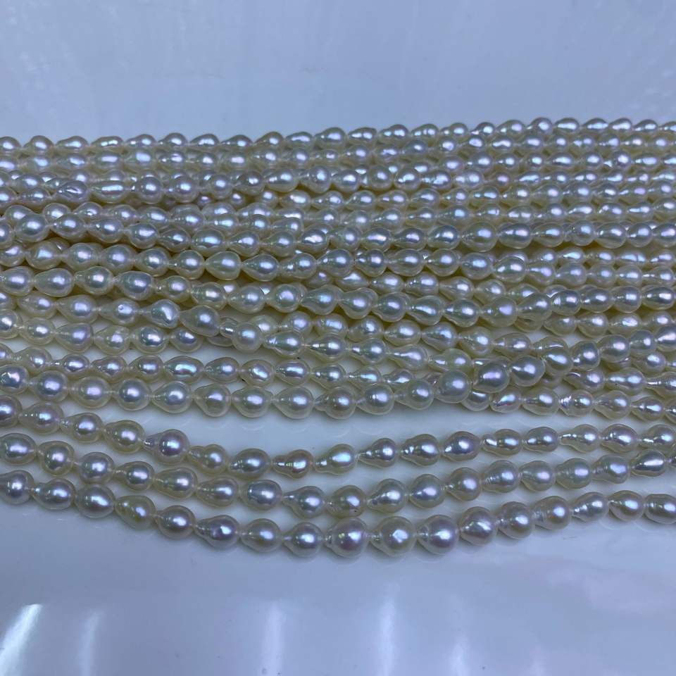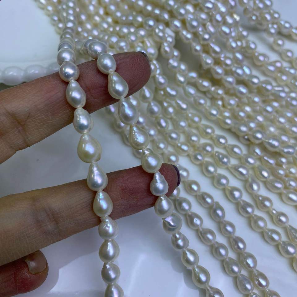 สร้อยคอมุกน้ำจืดทรงหยดน้ำสีขาวแบบบาโรก ขนาด 5-6 มม. วัสดุทำมือ DIY รูปทรงกระดุม เม็ดหลวม