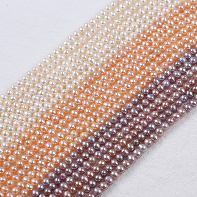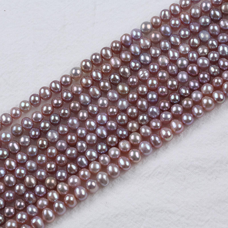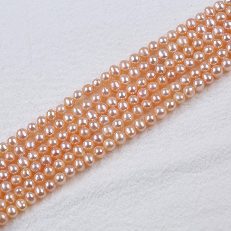 ชุดทำสร้อยคอและกำไลไข่มุกน้ำจืดธรรมชาติ ขนาด 5-6 มม. รูปทรงเกือบกลม สีขาวอมชมพู แบบกึ่งสำเร็จรูป