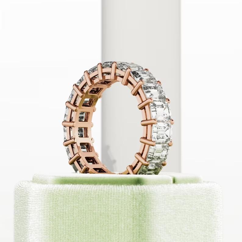 5.7 tcw สายรัดเพชรที่ปลูกในห้องทดลองแหวนหมั้นเพชรมรกตแหวนเพชรนิรันดร์แหวนแต่งงานแบบง่ามสีขาวทอง