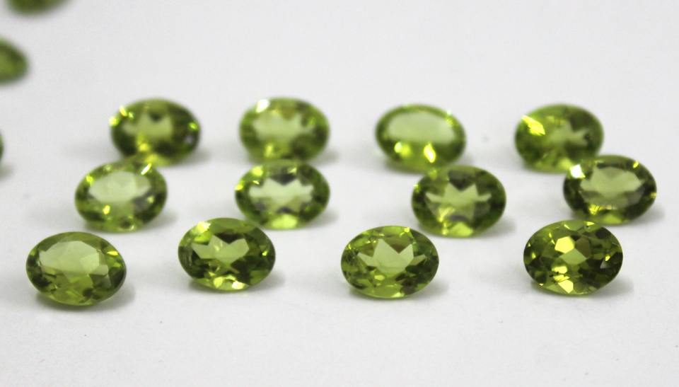 พลอยเพอริโดสีเขียว0.95CT 5x7มม. สำหรับตัดเครื่องประดับ