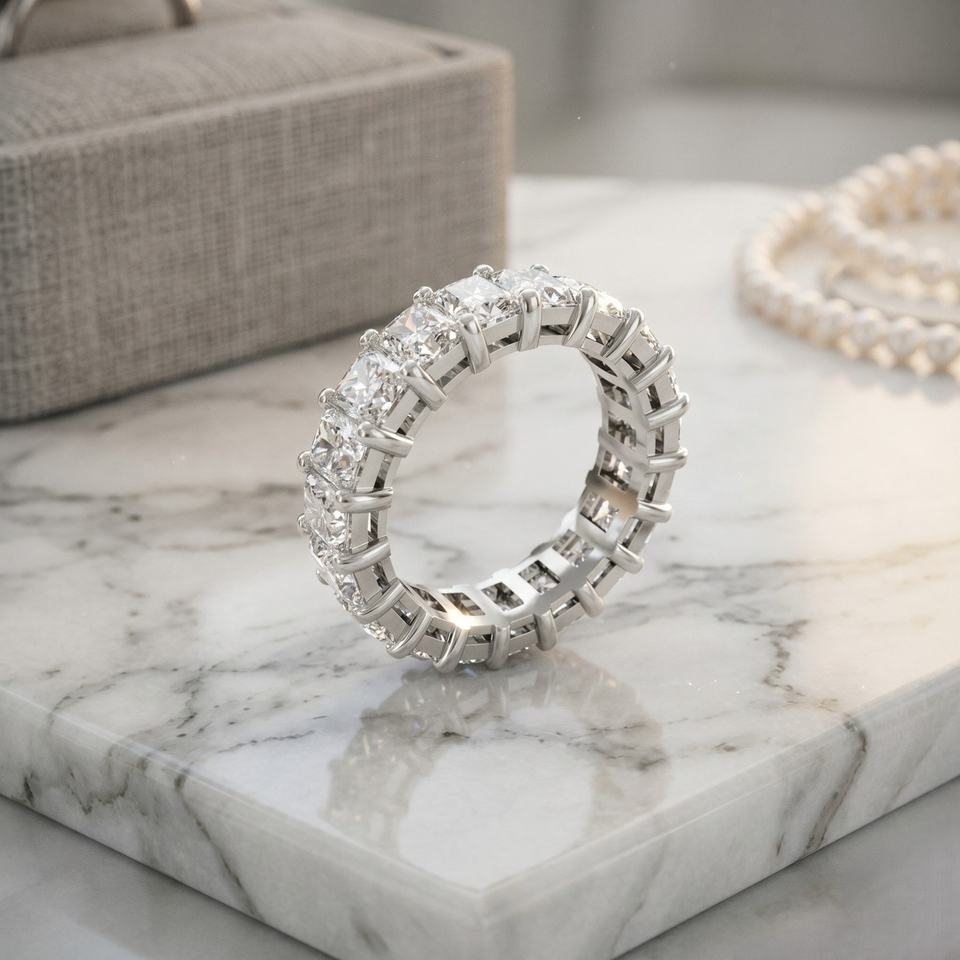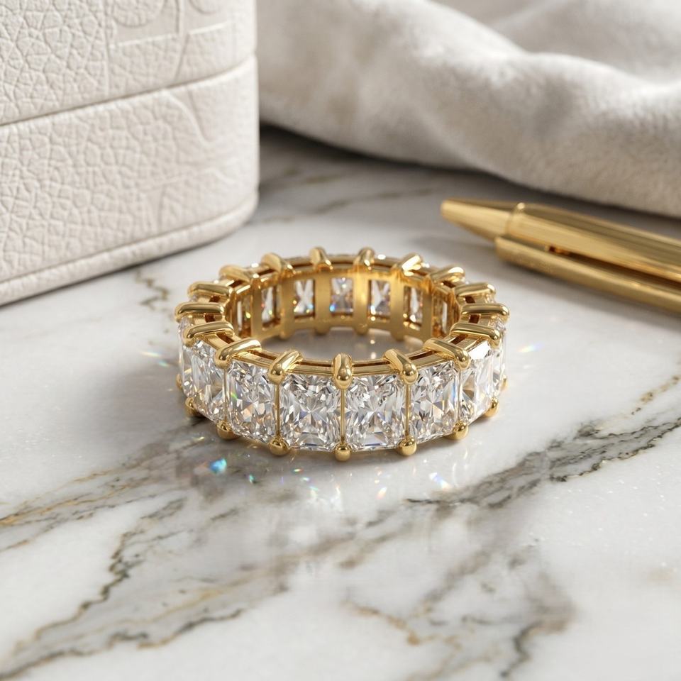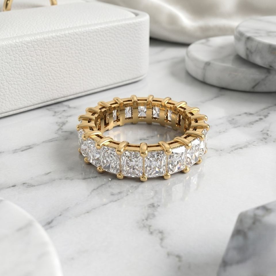 แหวนเพชรทรงเรเดียนท์คัท 5.70 กะรัต แบบฝังเพชรรอบวง