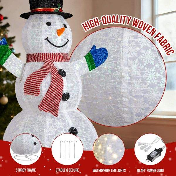 ตุ๊กตาหิมะแบบดึงขึ้นสูง 5.7 ฟุต พร้อมไฟประดับในตัว ต้นไม้เล็ก ไฟ LED สีขาวอบอุ่น 200 ดวง ของตกแต่งสวนคริสต์มาส