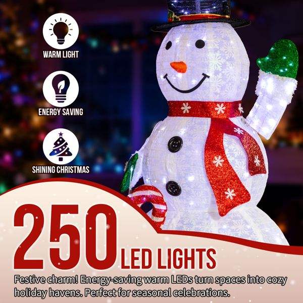 ตุ๊กตาหิมะแบบดึงขึ้นได้ขนาด 5.7 ฟุต พร้อมไฟ LED สีขาว 210 ดวง สำหรับตกแต่งสวนในวันคริสต์มาส ตกแต่งภายนอกบ้าน เพิ่มความสวยงามในเทศกาลคริสต์มาส