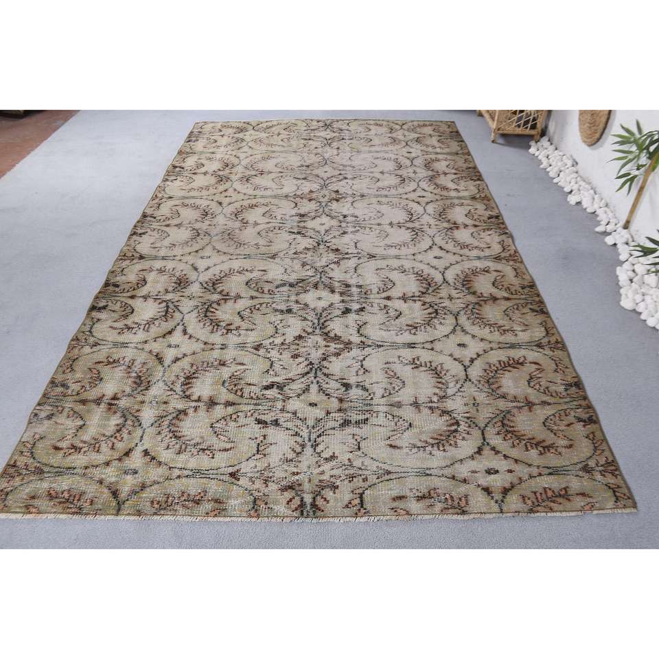 พรมตุรกีวินเทจขนาด 5.7x9 ฟุต พรมขนาดใหญ่ พรมขนสัตว์สีเบจ