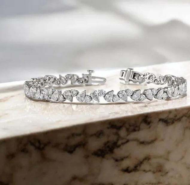 สร้อยข้อมือเพชร5.8 CT ลูกแพร์และกลมสำหรับผู้หญิงกำไลทองยืดหยุ่นได้เป็นของขวัญสำหรับแฟนสร้อยข้อมือเทนนิส