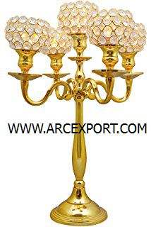 เชิงเทียนชุบทอง5แขนสำหรับงานแต่งงานและงานเลี้ยง
