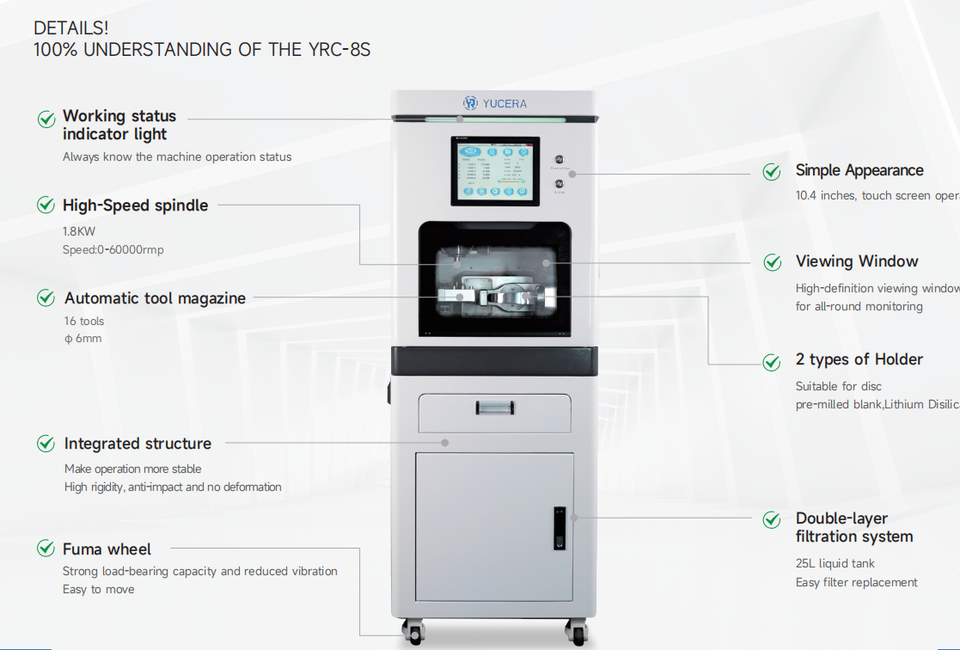 การแปรรูปวัสดุ:ไทเทเนียม, เซอร์โคเนีย, PMMA, ขี้ผึ้ง, PEEK