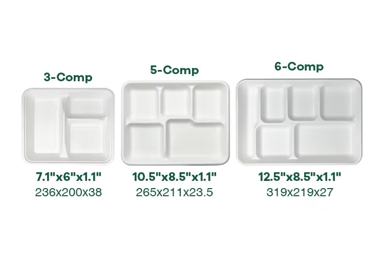 ถาดอาหาร 5 CP MEAL TRAY ภาชนะใส่อาหารย่อยสลายได้เป็นมิตรกับสิ่งแวดล้อม ภาชนะใส่อาหารแบบใช้แล้วทิ้ง ทำจากชานอ้อย