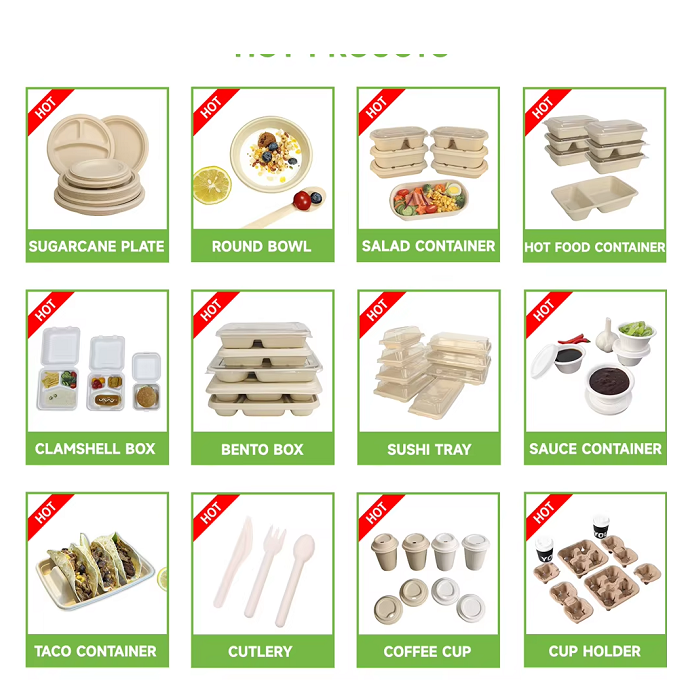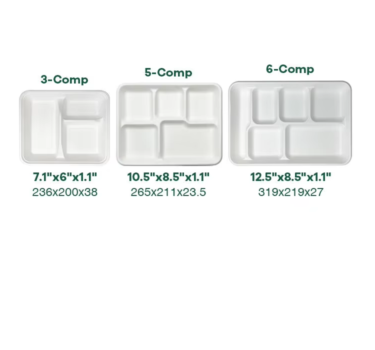 ถาดใส่อาหารทำจากชานอ้อยแบบใช้แล้วทิ้งเป็นมิตรต่อสิ่งแวดล้อมถาดใส่อาหาร3,5และ6ช่องย่อยสลายได้ตามธรรมชาติผลิตจากชานอ้อย