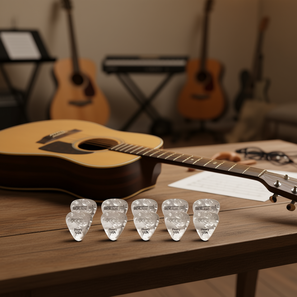ปิ๊กกีตาร์สีขาว หนาพิเศษ 12 ชิ้น