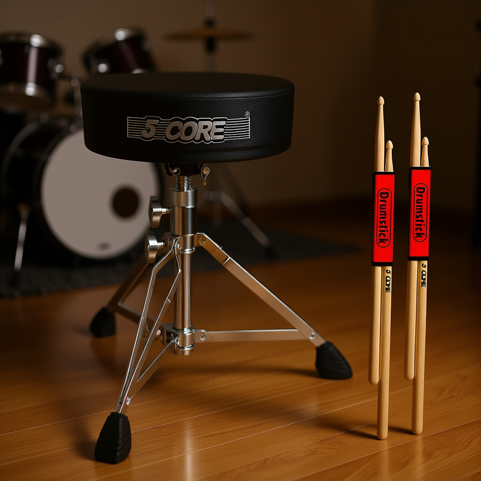 เก้าอี้กลองกำมะหยี่สีดำแบบชั้นเดียว 5 แกน พร้อมเบาะรองนั่งปรับระดับความสูงได้ โครงเหล็กแข็งแรงทนทาน สำหรับผู้ใหญ่และเด็ก