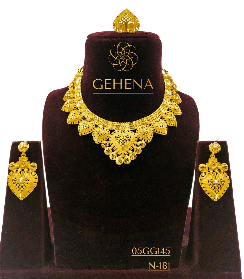 5 gramme 24K สร้อยคอชุบทองชุดใหญ่ยาวสวยต่างหูและแหวนสวมนิ้วออกแบบผู้หญิงแต่งงานกับ Petite arabes ทันสมัยใหม่