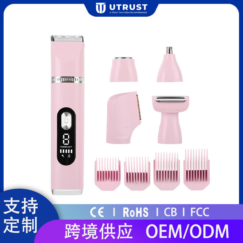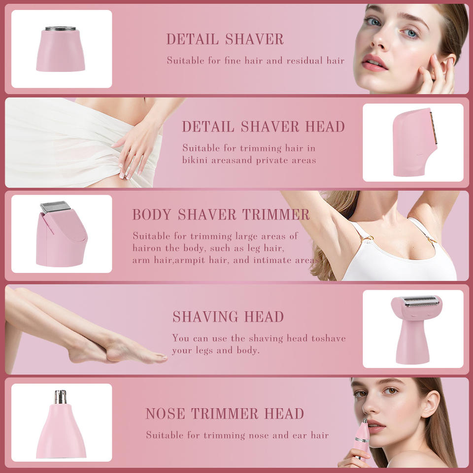 เครื่องตัดขนไฟฟ้า 5 in 1 กันน้ำสำหรับผู้หญิง แบบใบมีดรูปตัวยู ชาร์จไฟได้ มาตรฐาน IPX7 ล้างทำความสะอาดได้ทั้งตัว