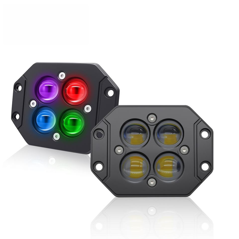 ไฟสปอร์ตไลท์เสริม RGB LED ขนาด 5 นิ้ว สี่ดวง สีสันสดใส 6000k 9-36V IP67 สำหรับดัดแปลง/อัพเกรด MO59 4x4 รถมอเตอร์ไซค์ รถจี๊ป