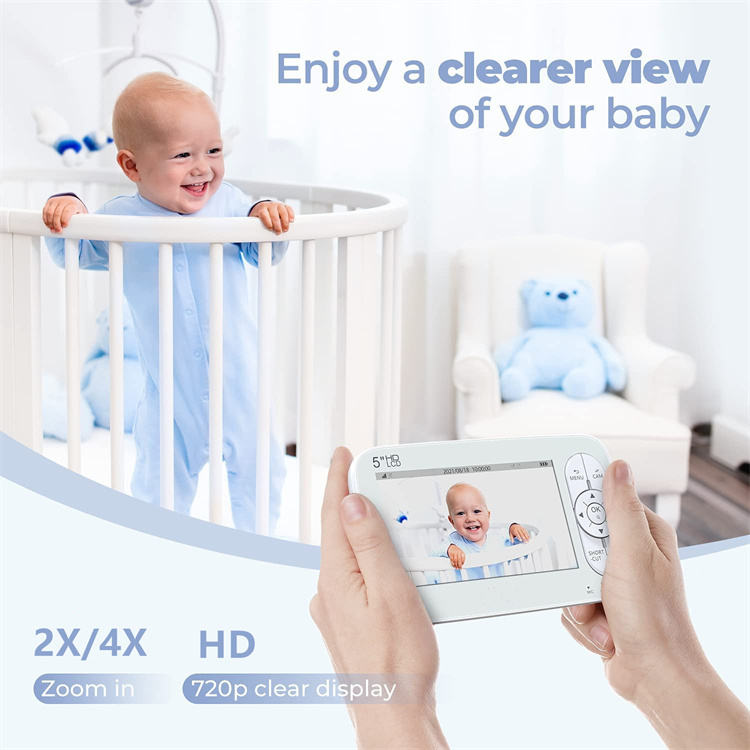 5 นิ้ว Full HD 1080P จอภาพเด็กแยกหน้าจอ 2.4GHz FHSS สองทางวิดีโอ babyphone ไม่มี WiFi