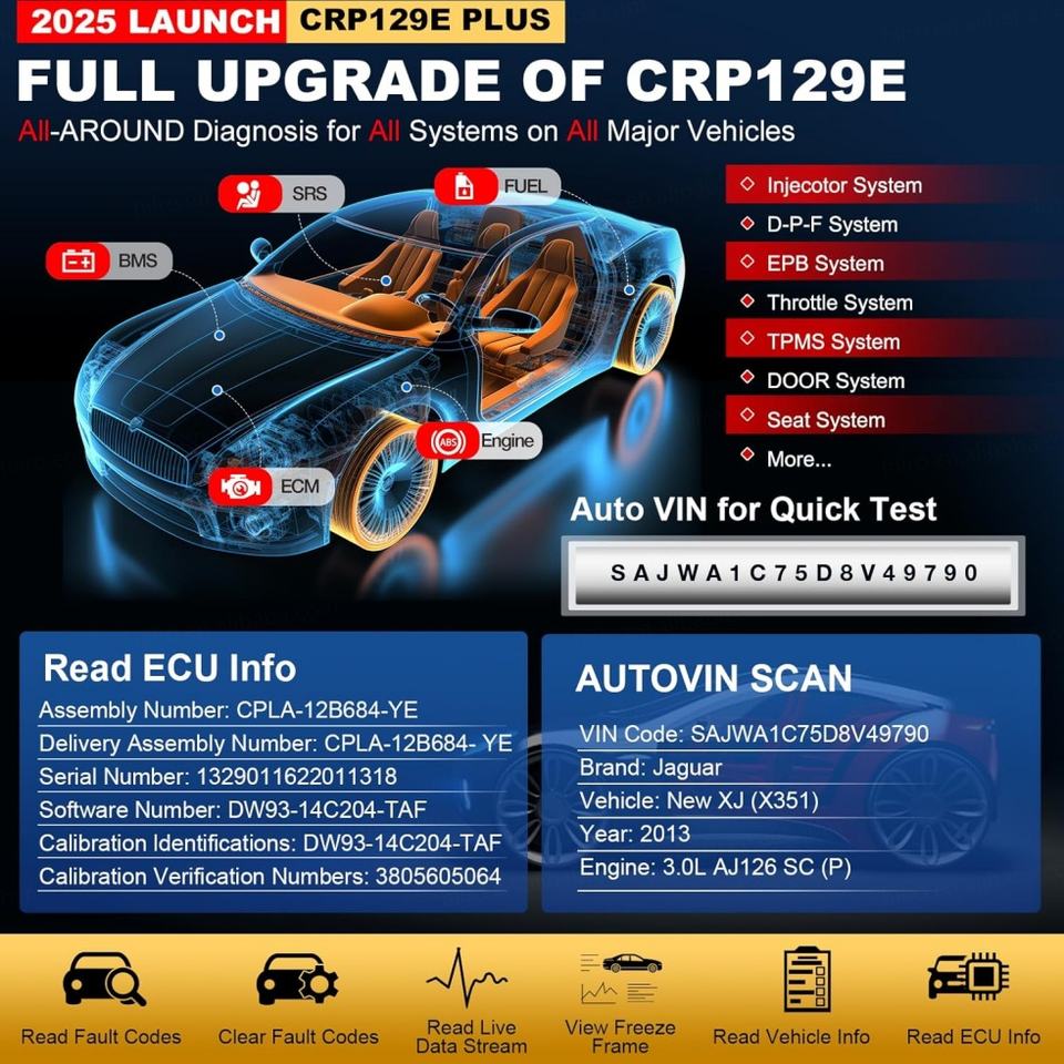 เครื่องมือวินิจฉัยรถยนต์ LAUNCH CRP129E PLUS ขนาด 5 นิ้ว พร้อมฟังก์ชันรีเซ็ตพิเศษ 8 แบบ และฟังก์ชัน OBD2 ครบถ้วน พร้อมอัปเดตฟรี 2 ปี