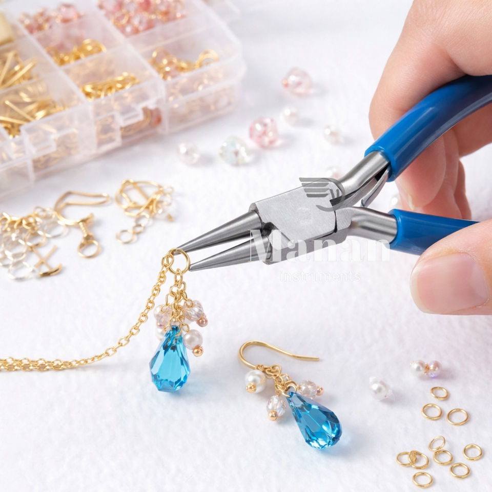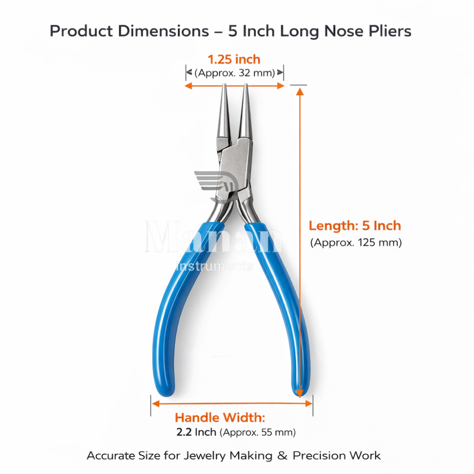 คีมปากแหลมขนาด 5 นิ้ว ทำจากสแตนเลส สำหรับงานประดิษฐ์เครื่องประดับ งานร้อยลูกปัด ยี่ห้อ MANAN INSTRUMENTS