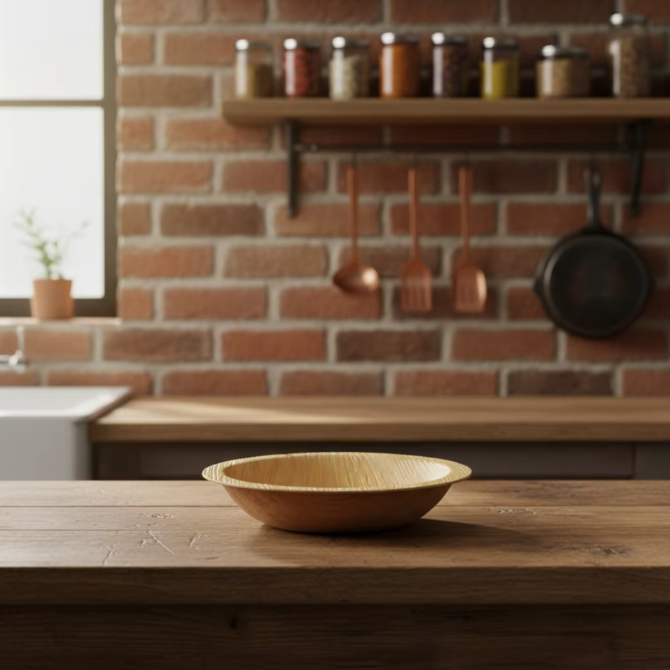 ชามใบปาล์มสี่เหลี่ยมขนาด 5 นิ้ว ชามใบไม้ธรรมชาติแบบใช้แล้วทิ้ง ชามเสิร์ฟอาหารแบบยั่งยืน จำนวนมาก
