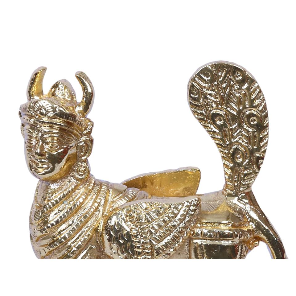 Kamadhenu ทองเหลืองขนาด5นิ้วพร้อมหางนกยูงฐานรูปไข่ชุบทองทำในอินเดียตกแต่งบ้าน