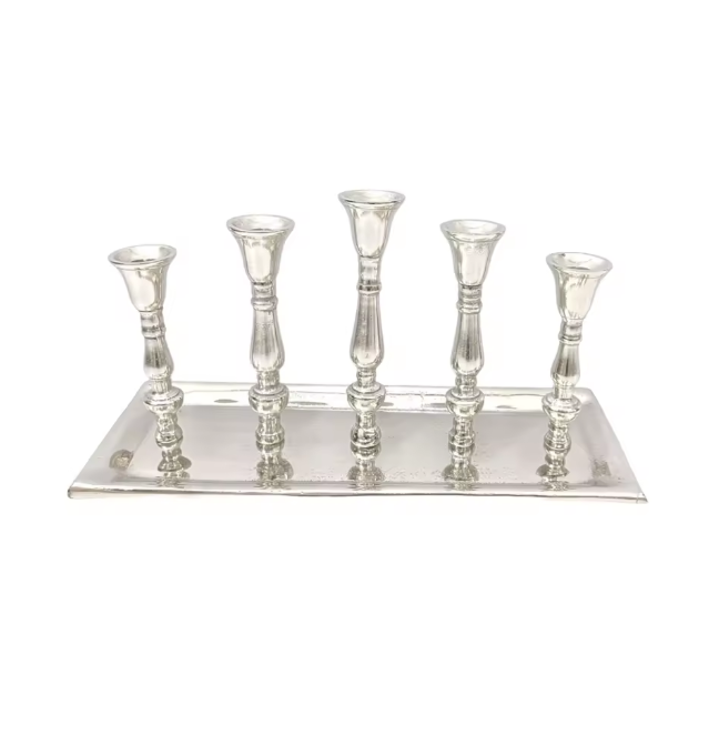 เชิงเทียนอะลูมิเนียม 5 ชิ้น สำหรับตกแต่งบ้าน ที่วางเทียนโลหะทรงเสา สำหรับคริสต์มาสและวันเกิด โคมไฟและขวดโหลใส่เทียน