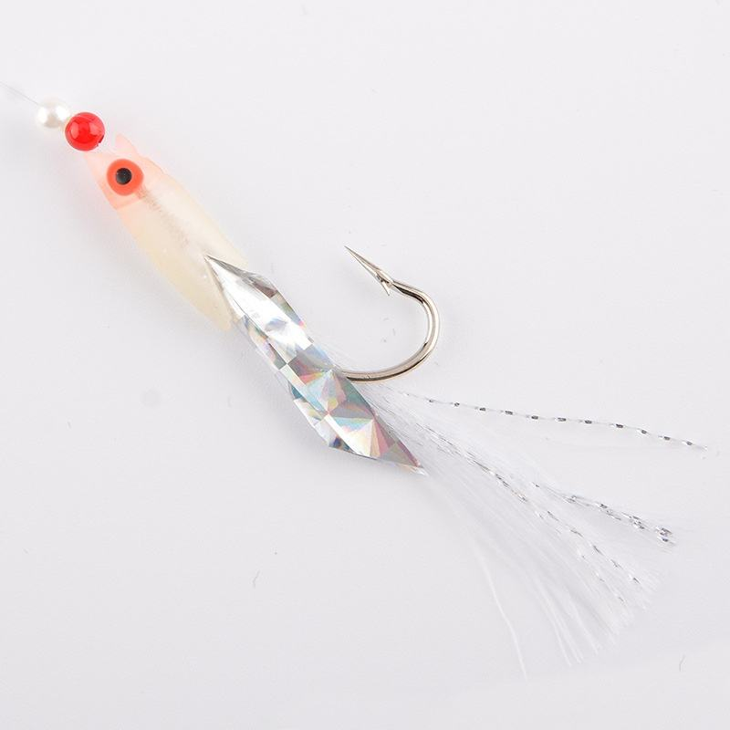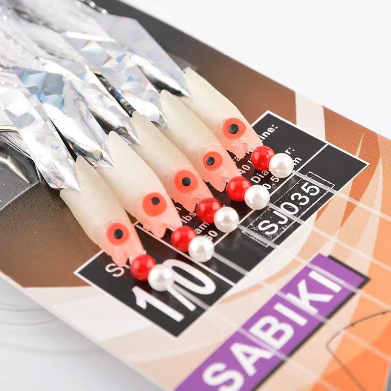 หัวปลาเรืองแสง 5 หัว กระดาษเลเซอร์สีเงิน ตะขอคู่ 5 ตัว ชุดสายเบ็ดซาบิกิ เหยื่อตกปลา