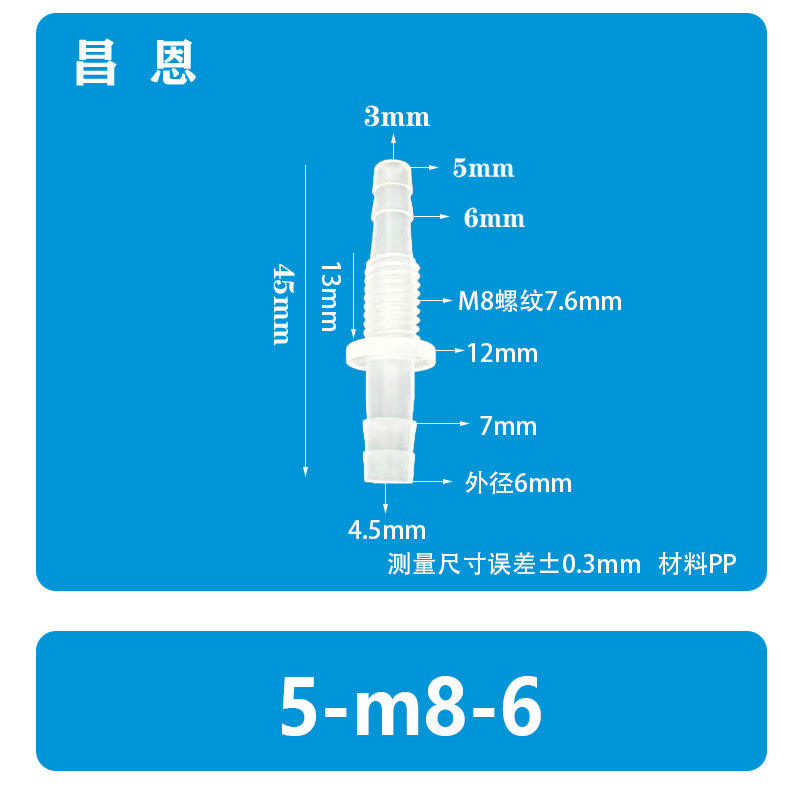 ข้อต่อท่อพลาสติกแบบตรง 5-M8-6 สำหรับต่อผ่านแผง ข้อต่อเร็วสำหรับก๊อกน้ำ ข้อต่อเร็วแบบ Pagoda อุปกรณ์เสริม
