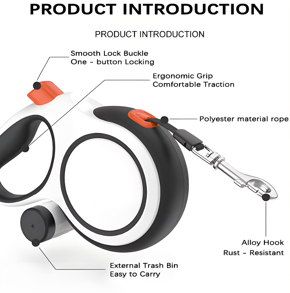 สายจูงสุนัขแบบยืดหดได้ 5 เมตร สีกากี/น้ำตาล สองสี ทนทาน หรูหรา ปรับแต่งได้ พร้อมที่ใส่ถุงเก็บอุจจาระ รับน้ำหนักได้ 50 กก. สไตล์ตะวันตก เรียบง่าย