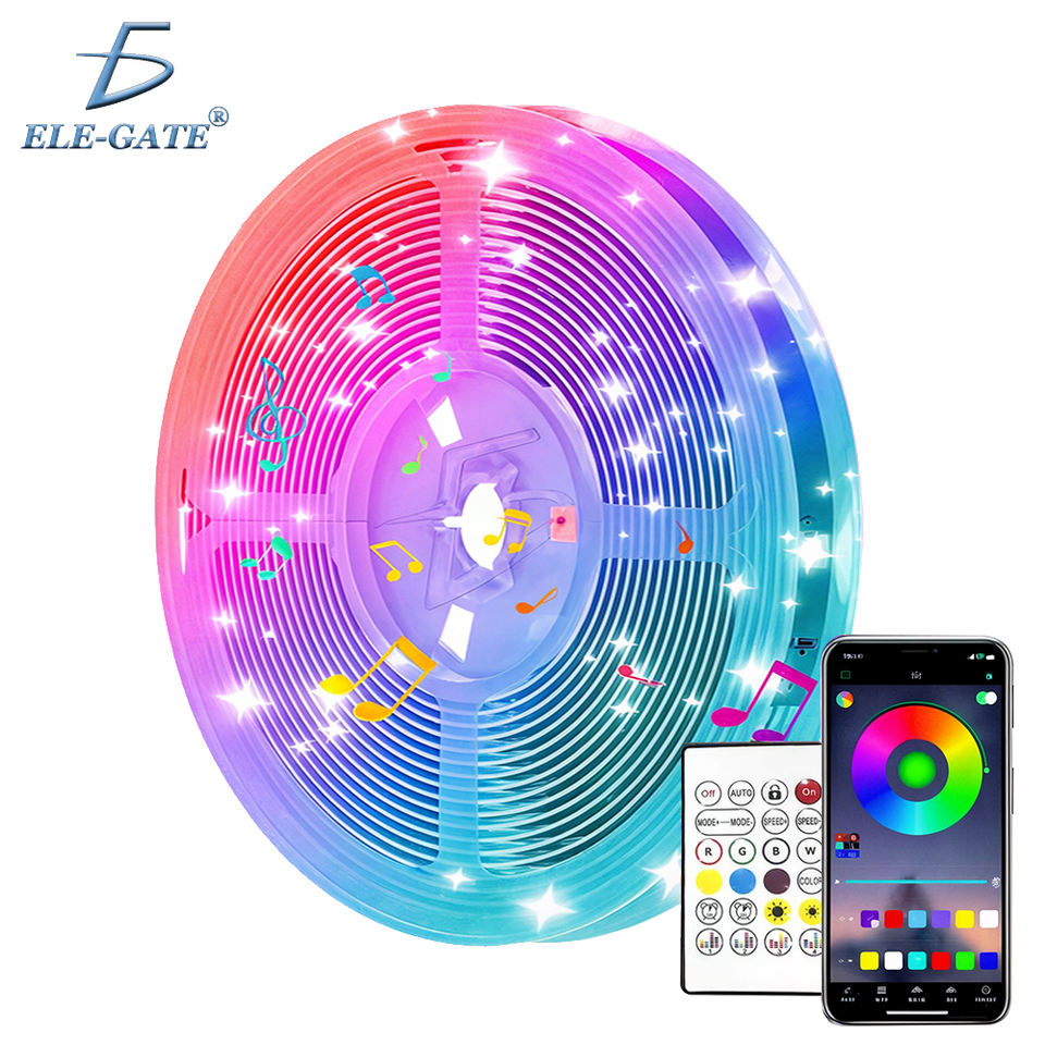 แถบไฟ LED RGB ยาว5เมตรสำหรับบลูทูธ WS2812B IC DC 5V 6500K CCT APP และการควบคุมด้วยเสียงความกว้าง8มม. PCB