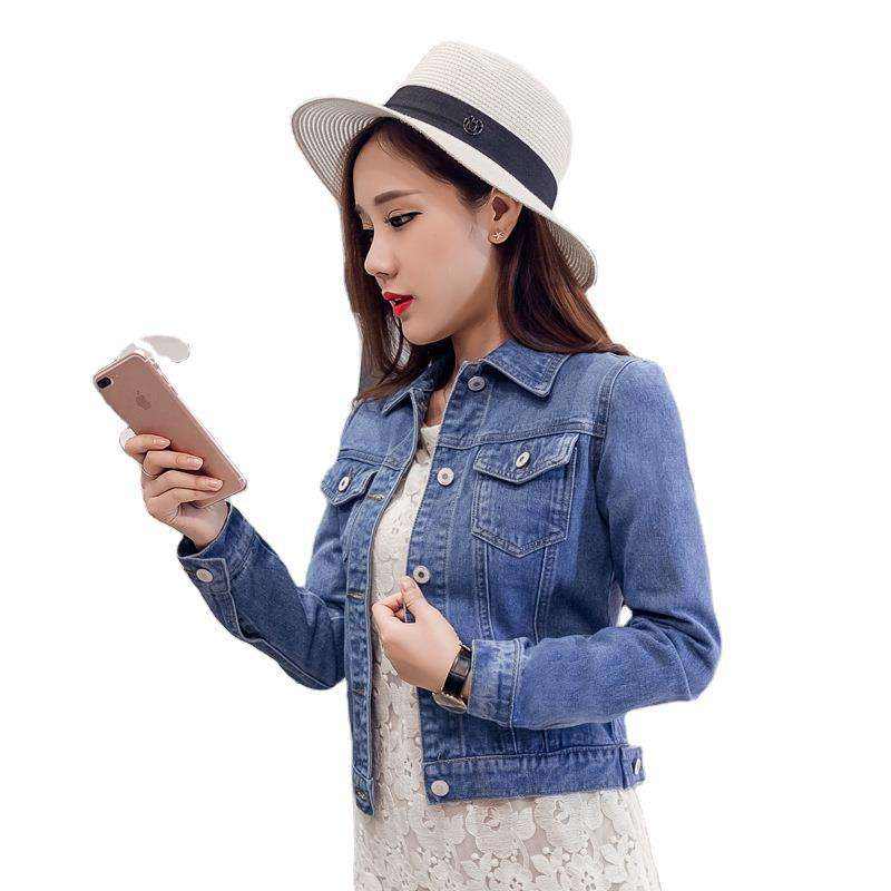 เสื้อแจ็คเก็ตเดนิมบางสีพื้น ลด 5% ไซส์ S-3XL สำหรับผู้หญิง สไตล์เกาหลี แขนยาว ระบายอากาศได้ดี เหมาะสำหรับฤดูใบไม้ผลิและฤดูใบไม้ร่วง