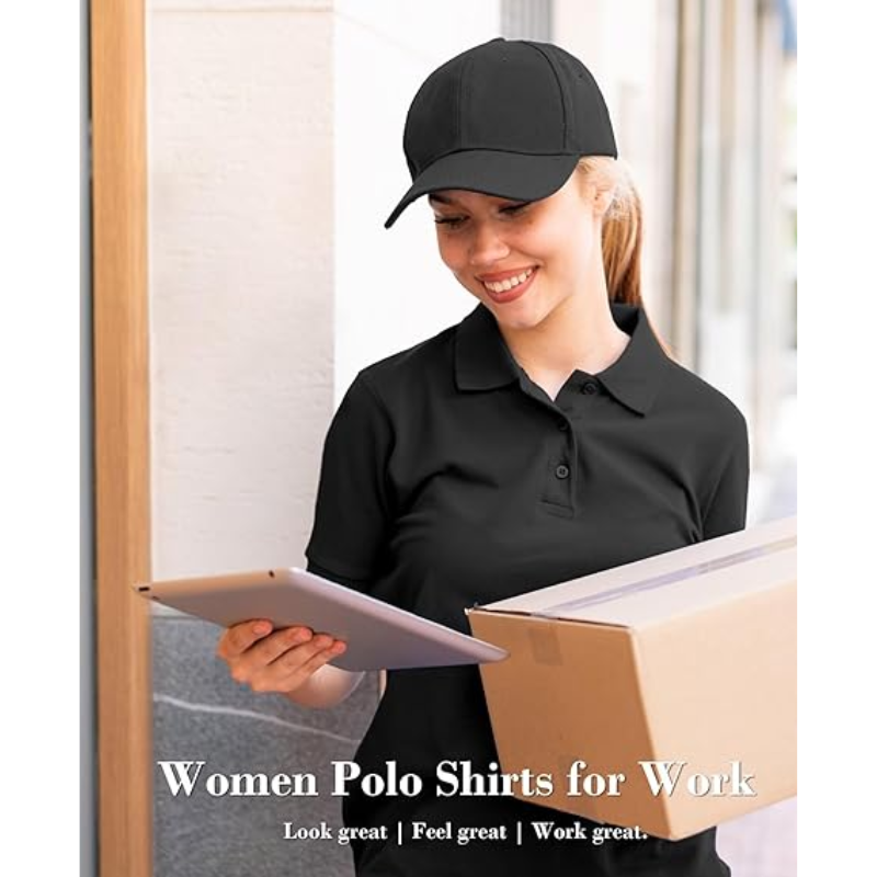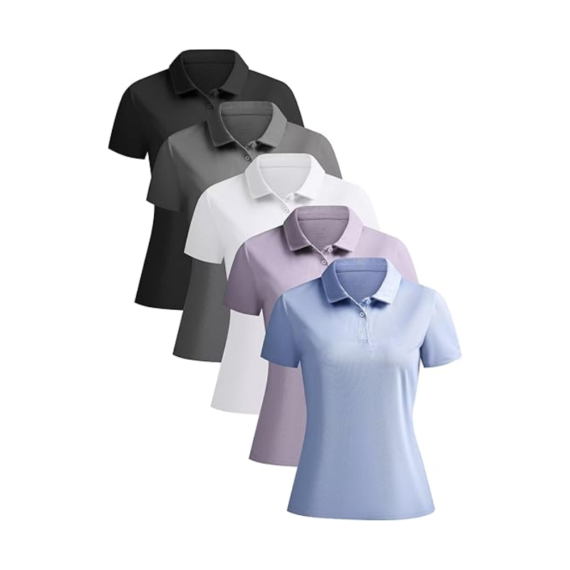 เสื้อโปโลผู้หญิง 5 ตัว แพ็ค แขนสั้น ปก 3 กระดุม เสื้อยูนิฟอร์ม ระบายเหงื่อ เสื้อยืดทำงานลำลอง รับผลิตแบบ OEM ODM ทุกขนาด