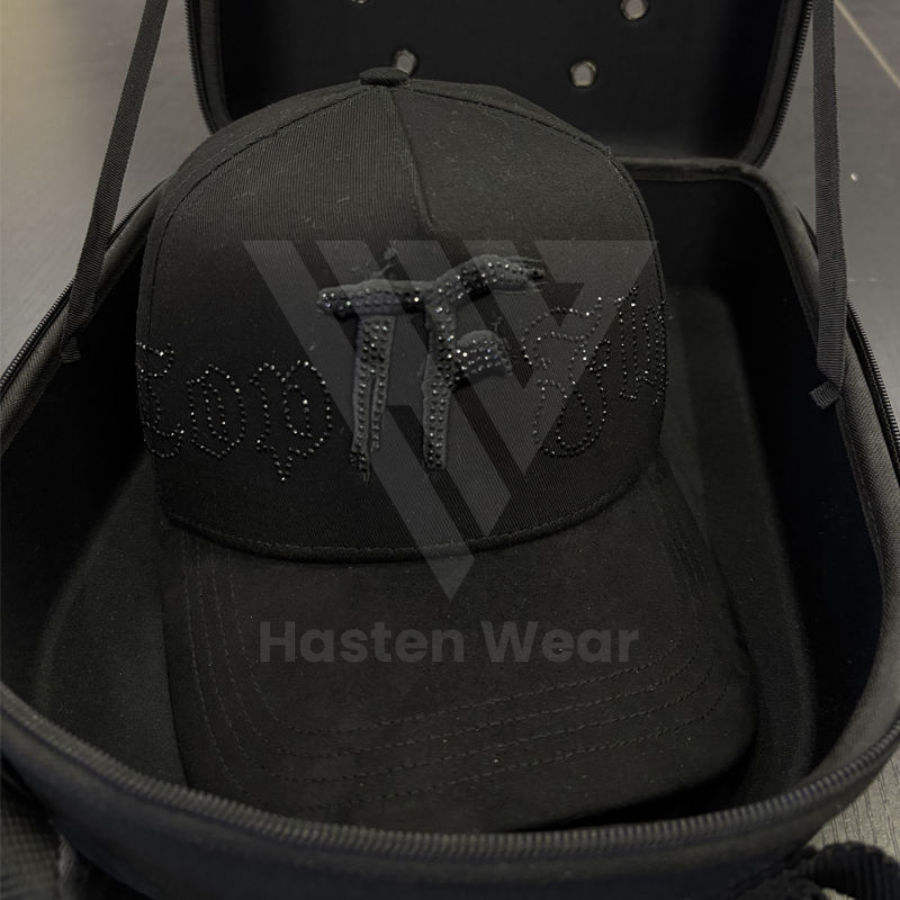 หมวกแก๊ป 5 แผง แบบดันดี้ ผ้าหนังกลับ ซับในผ้าซาติน ปักลายเพชร สำหรับผู้ชาย