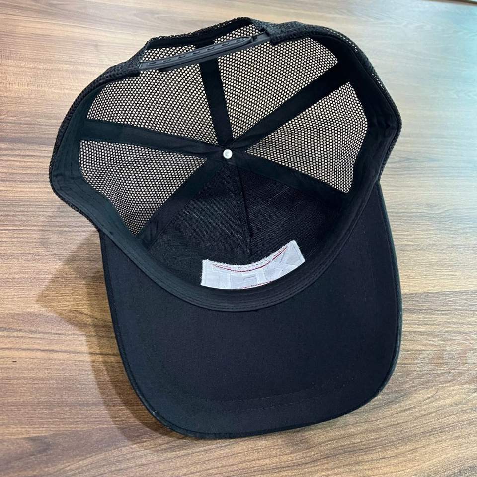 หมวกแก๊ปทรงทรัคเกอร์ 5 ชิ้น ผลิตในเวียดนาม หมวกตาข่ายปีกโค้ง สำหรับผู้ชายและผู้หญิง ปักโลโก้หนังตามสั่ง