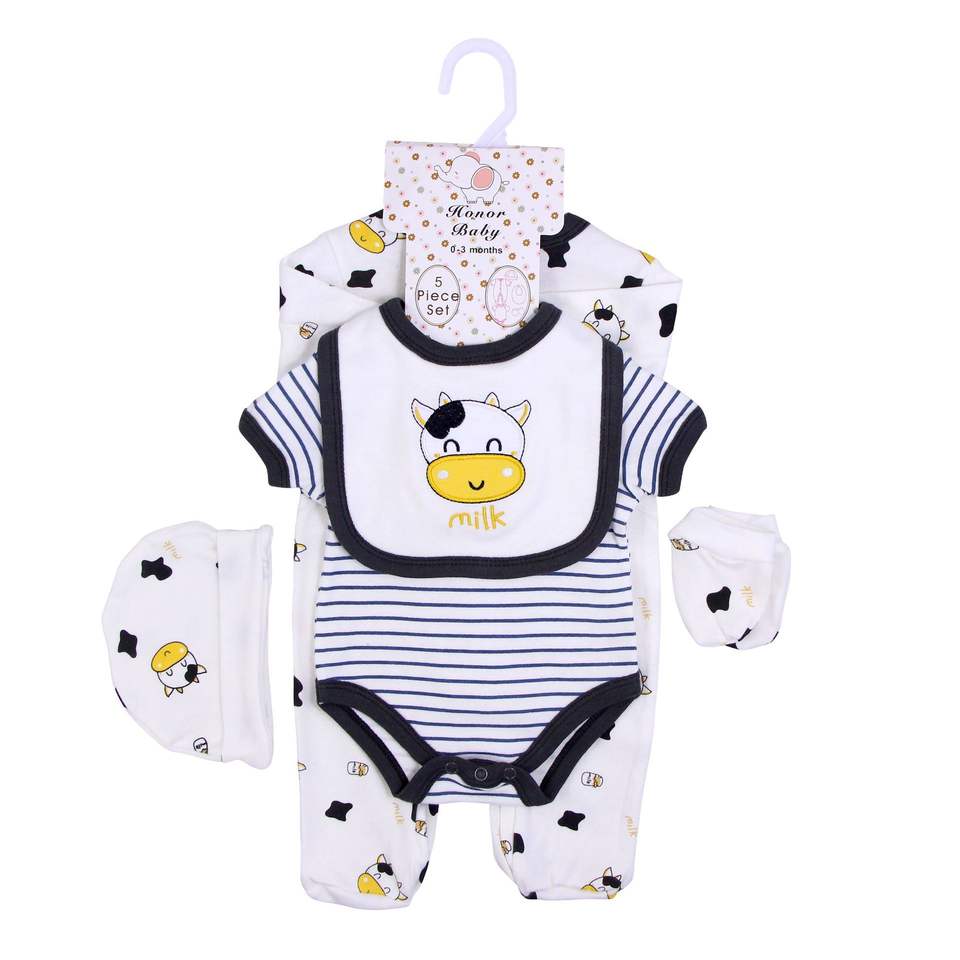 ชุดเสื้อผ้าเด็กแรกเกิด 5 ชิ้น ชุดรอมเปอร์ บอดี้สูท ผ้ากันเปื้อน ขายส่งเสื้อผ้าเด็ก ผ้าฝ้าย บูติก มีสินค้าในสต็อก