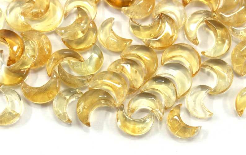 5ชิ้นเกรด AAA สีเหลืองซิทรินธรรมชาติรูปทรงดวงจันทร์เรียบชุดอัญมณีสีเหลืองจันทร์เสี้ยวคอลเลกชันเครื่องประดับหินสีขาวสไตล์ตัด