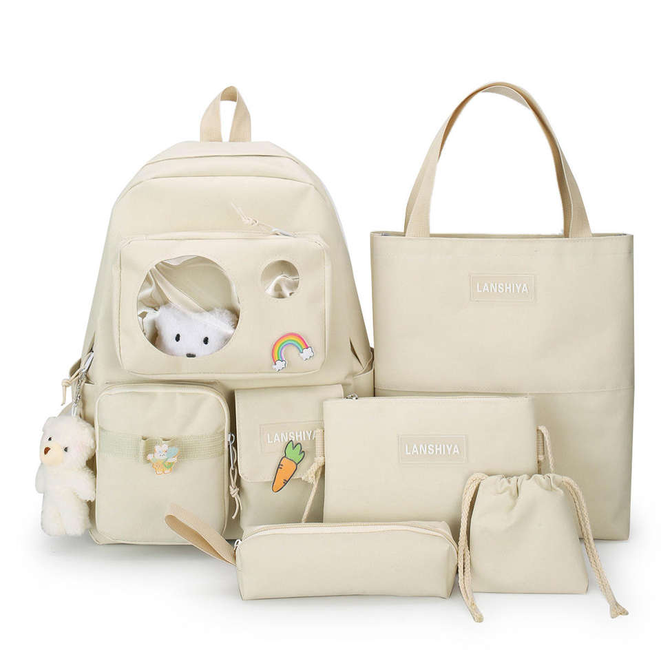 ชุดกระเป๋า5ชิ้นสำหรับนักเรียนมัธยมปลายกระเป๋านักเรียนใบใหญ่ทนทานสำหรับเด็กๆชุดกระเป๋าเป้แฟชั่นราคาถูก